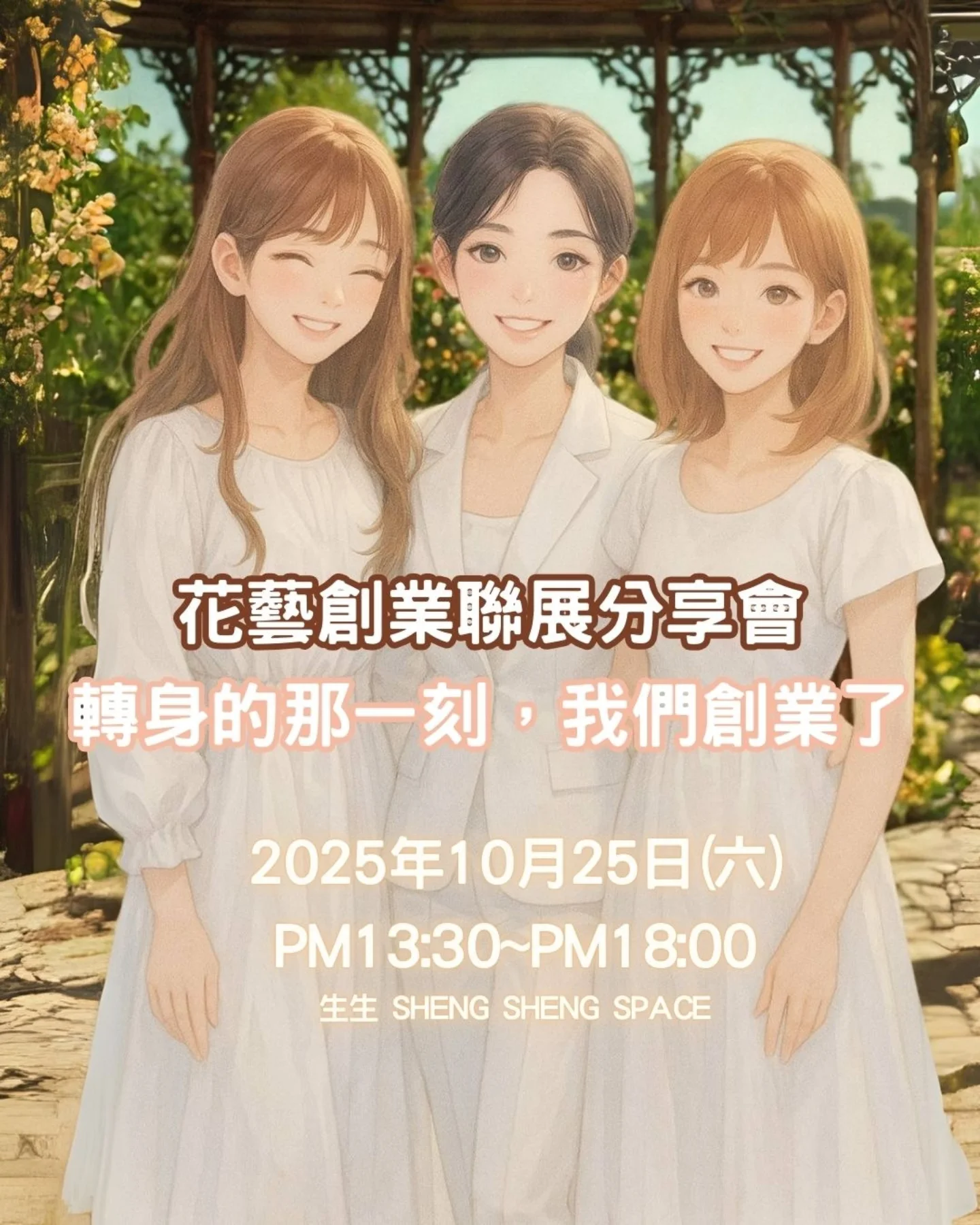 10/25:我們將在 生生共享空間 舉辦 《花藝創業聯展分享會》